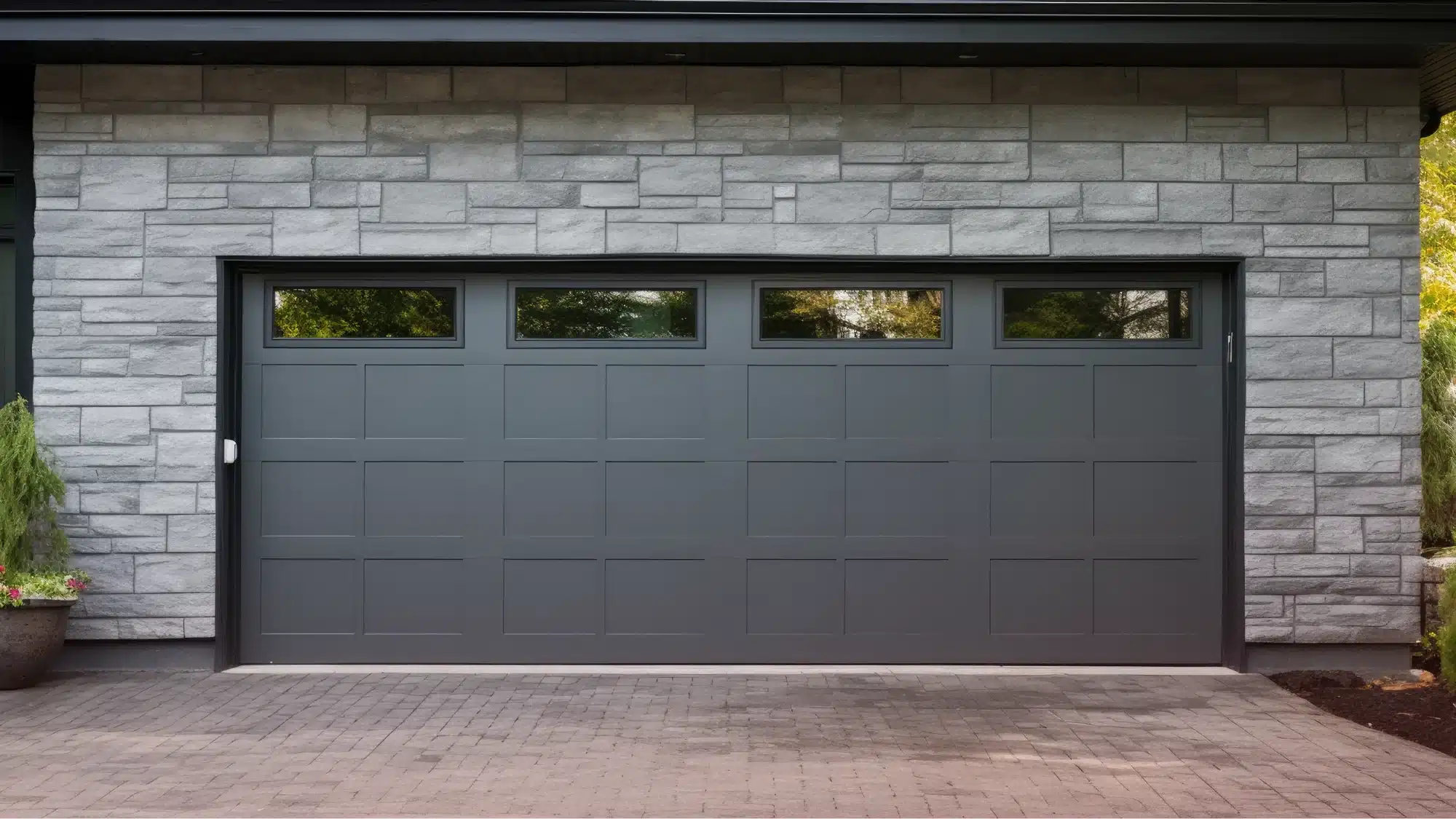 - Modern and Contemporary Styles: For a more minimal aesthetic, modern doors use sleek panels, glass inserts, or full-height glass for a bold statement. Aluminum frames and high-contrast finishes are common in contemporary designs, offering durable performance with a lighter weight profile. These doors often integrate well with energy-efficient insulation and smart opener technology.